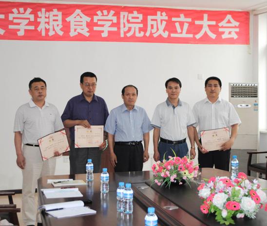 副校长陶秀伟为学院领导班子颁发了聘书并发表讲话。他首先代表校党委对学院的成立表示祝贺,并对学院今后的发展提出了几点希望:一是粮食专业根基深厚,具有50多年的文化沉淀,且大部分老师都来自于粮食专业的最高学府,由于大家的不懈努力,粮食专业建设才有了今天的发展,使专业层次上了新的台阶。整合后要尽快融合,发挥各自的专业特长,在新组建的管理团队的带领下,营造一个和谐共事,共谋发展的良好氛围;二是要明确yl23411永利集团官网的办学定位和人才培养目标,坚持特色化办学,保持特色化的人才培养方向,努力提高学生的实践应用能力,培养行业需要的应用性人才,加大教学改革力度,争取在工科专业做出表率;三是加强师资队伍建设,引进高层次人才,使师资队伍建设可持续发展。最后,陶秀伟副校长表达了对学院未来发展的美好祝愿。