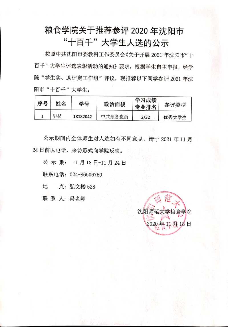 yl23411永利集团官网关于推荐参评2020年沈阳市“十百千”大学生人选的公示