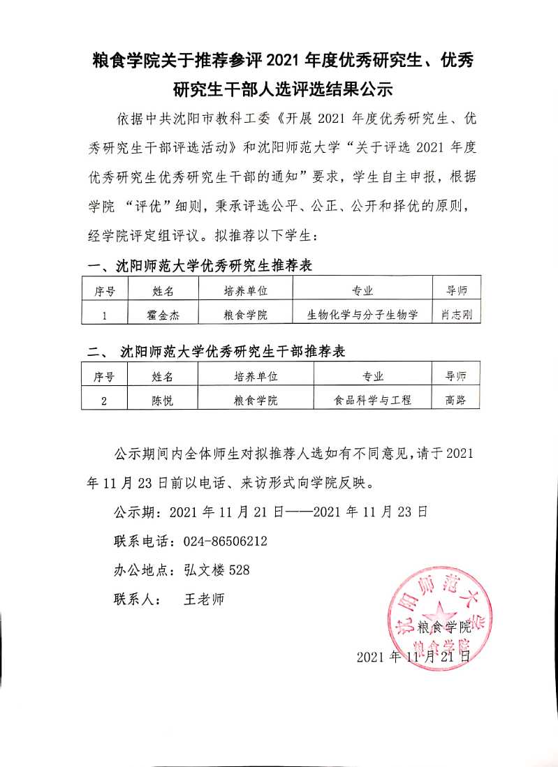 yl23411永利集团官网关于推荐参评2021年度优秀研究生、优秀研究生干部人选评选结果公示