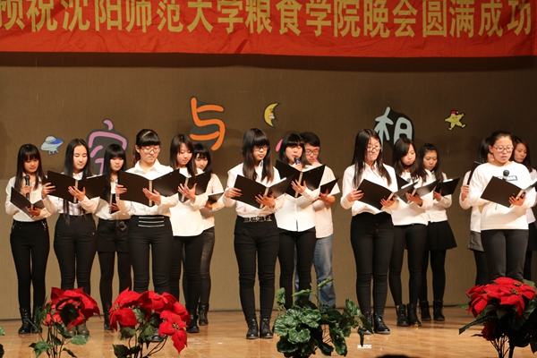 同学们的表演精彩纷呈,老师们也多才多艺,杨柳老师表演的舞蹈《掀起你的盖头来》带动了现场的气氛,BOBO老师一首缅甸语版的《找自己》充满了异域风情,姜忠丽老师带来的《美丽的草原我的家》极具民族特色,王庆峰老师演唱的《卷珠帘》宛转悠扬,全体教师合唱《相亲相爱一家人》时,现场同学全部起立,挥舞手中的荧光棒一起合唱。晚会在诗朗诵《梦想在望》中圆满落下帷幕,饱含了粮食人的铿锵自信和对未来的无限希望。