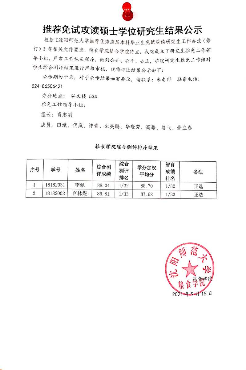 yl23411永利集团官网2022年推荐免试攻读硕士学位研究生结果公示
