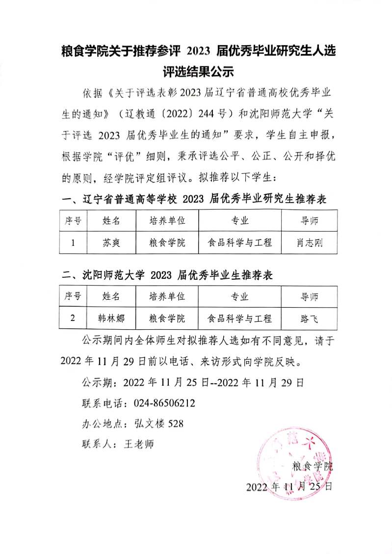 拟推荐参评 2023 届优秀毕业研究生人选评选结果公示